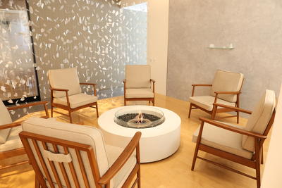 暖色を基調とした2階ロビー