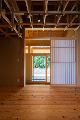 堂宮大工の伝統技能をデザインとして活かした住宅で、ここには堂宮大工として培ってきた技、経験をもとに独自の発想を加えることで、木造建築ならではの魅力、そして伝統技法をさらに高めていきたいとの思いがあります。