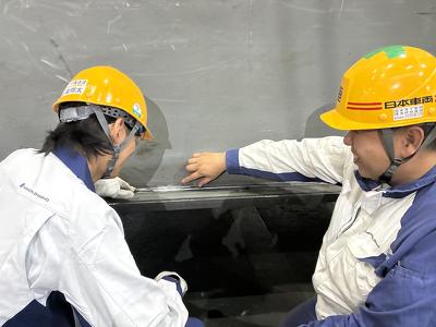 一般的な製品の溶接と、橋梁の溶接との違いについても伺いました。「例えば自動車の場合は、薄板溶接といって1mm程度の鉄板を扱うことがほとんどです。しかし橋梁の溶接は20mm前後、場合によっては100mm程もある厚板を扱うことになります。そのため、用いる電気の強さや熱量、光の強さなどが桁違い。さらに鉄道が走る橋の場合、相当な振動と重量がかかるため、それに耐え得るための頑丈さが要求されます。当然、検査も厳しく、わずかな欠陥やズレも許されません。」