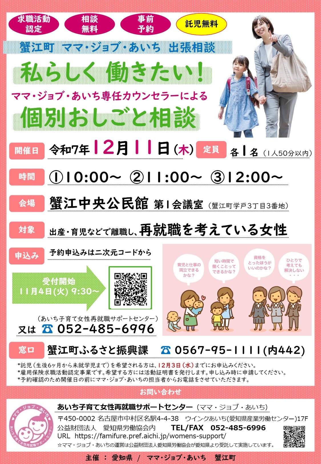 【蟹江町】ママ・ジョブ・あいち 出張相談
