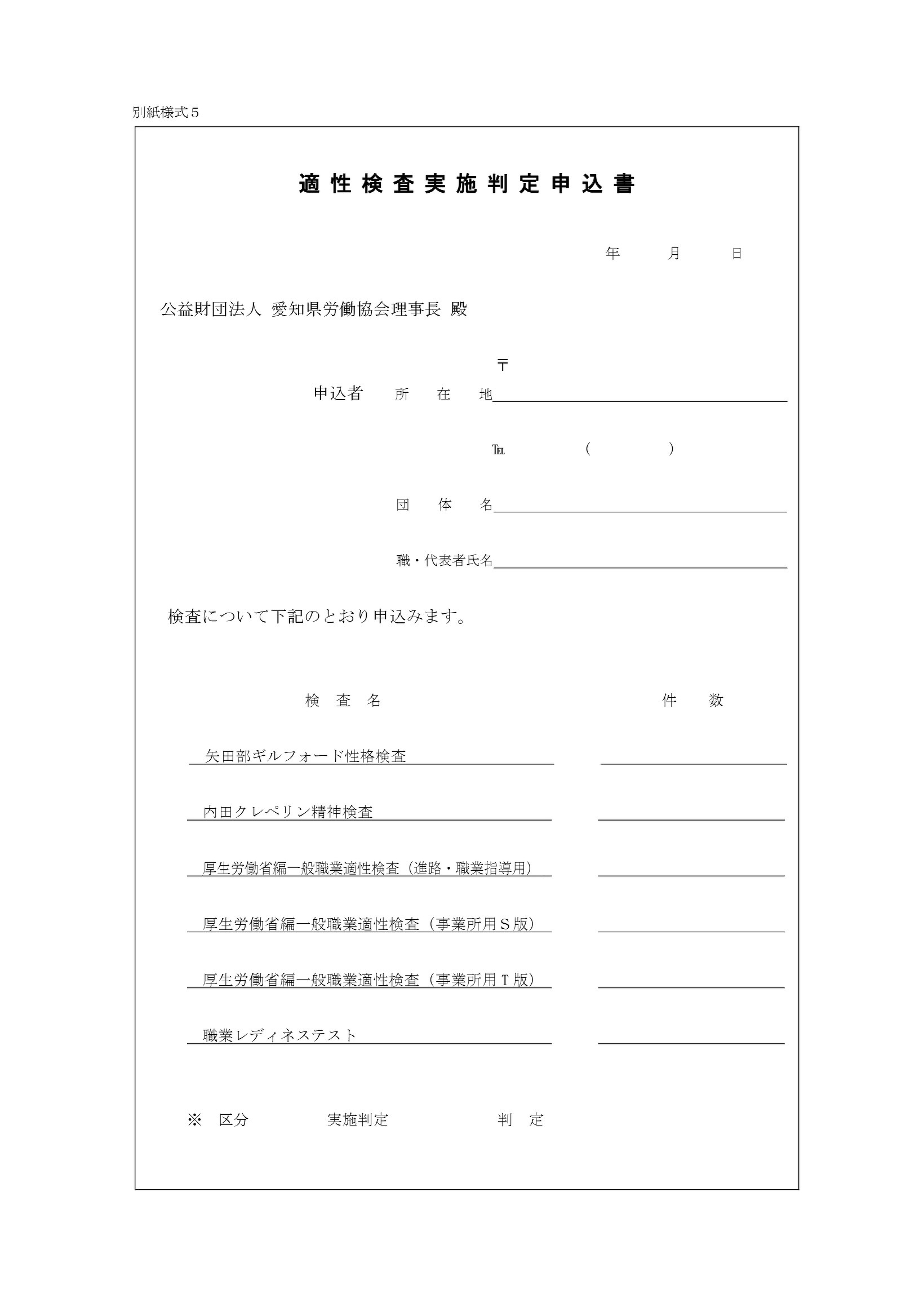 適性検査実施判定申込書(pdf)