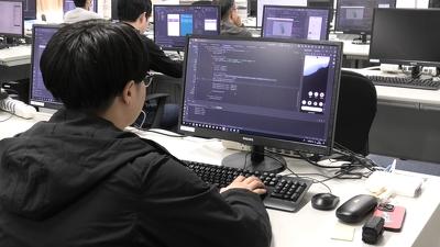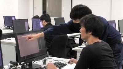 中には、エラーの原因を指導員とともに検証し、修正を行う訓練生の様子も見受けられました。「課題でつまずくことがあっても、指導員の方に気軽に質問ができるので、疑問をすぐに解決できる。不具合が修正でき、自分がプログラムしたとおりに動いたときは、やっていて楽しいと感じられる」と手ごたえを感じているようでした。