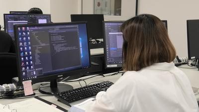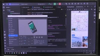 ある訓練生は、スマートフォンの地図アプリに地域の情報が表示されるプログラムを組んでいました。テキストを参考にプログラムを書き、実際に動作させます。想定どおりに動いているか確認し、不具合があればプログラムを修正する。この作業を繰り返し行っていました。