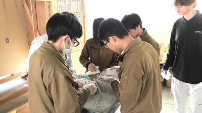 コンクリートを流し込むための型枠作り実習も