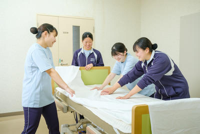 授業では、ベッドから車椅子への移乗一つとっても、想像以上に気をつける点やコツがあることを実感しました。実習では、授業で学んだ基本的な技術を、現場に適したバージョンにブラッシュアップできました。授業と実習の相乗効果で技術を身につけられたと思います。また、高齢者の方とのコミュニケーションにやりがいを見出せました。