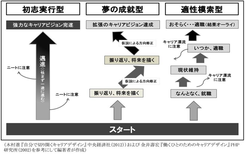 平成21年に高校の学習指導要領にキャリア教育が初めて記載され15年以上が経ちました。この間に学校でのキャリア教育はすっかり定着し、自己分析を行い職業指向性などについて知ることを学び、サポートを受けながら「夢の実現へのキャリアデザイン」を描くことが学習の常となりました。その結果、目的意識が高まり職業に就くことについて向かい合うなど大きな貢献を果たしてきました。一方で、やりたい仕事の呪縛に捉われて、キャリア志向の狭窄化が一部に生じているのも否めません。「これがしたい」と思えばそれ以外の選択肢が見えなくなってしまうのです。