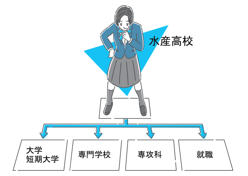宇宙技術職 増養殖業 水族館職員 ダイビングインストラクター 水産食品加工業 調理師 栄養士 など