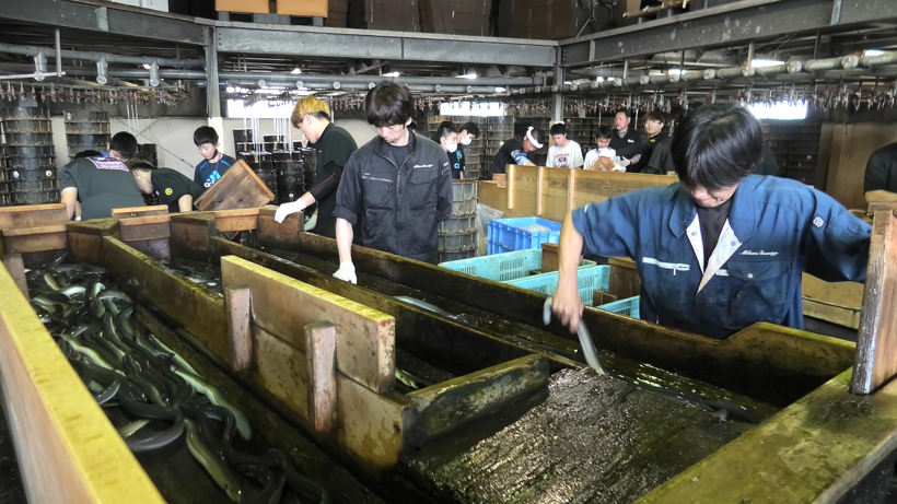西尾の名産「三河うなぎ」の産地問屋で ヌルヌルと格闘