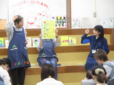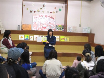 最終日には、ボランティアの方と一緒に、0歳から1歳半の子どもたちに絵本の読み聞かせを行いました。