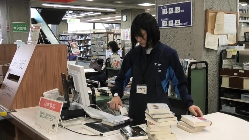 豊橋市羽根井町にある『豊橋市中央図書館』にやってきたのは、小さいころからこの図書館を利用している生徒。本を読むこと、家の本の整理をすることが好きという理由から、図書館を職場体験の場に選んだそうです。
