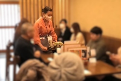 スタッフからお客さんへの接し方を学んだ二人は、お客さんが来店するとお茶を運んだり、注文を取りに行ったりと、積極的に取り組んでいました。