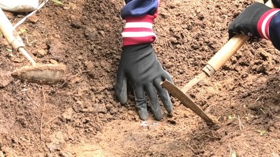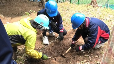 生徒たちは、職員や作業員に道具の使い方や掘り方を教えてもらいながら、黙々と掘り続けました。