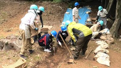 生徒たちが発掘するのは、『大手道(おおてみち)』という山のふもとから山頂のお城に行くためのメインの道があったと推定されている場所。織田信長や徳川家康の時代に造られた道の痕跡を探すのが、今回の発掘調査の目的です。半年以上の期間をかけて行われます。