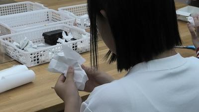 「集中を切らしたら、濡らした和紙が破れてしまう。」と、一言もしゃべらずに作業する生徒たち。60個ほど作り終えると、「できたー!」とほっとした表情を見せました。
