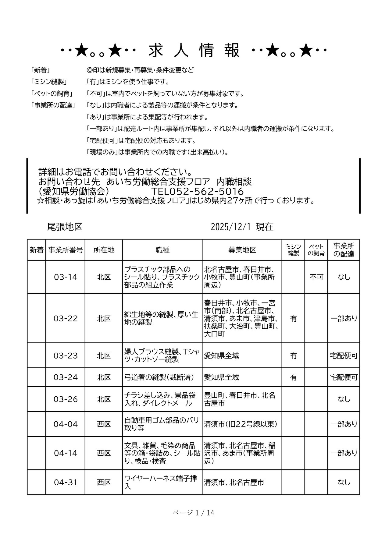 内職の求人を希望される事業者の方は、[キャリアサポートセンターあいち]までご連絡ください。
